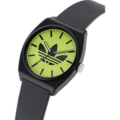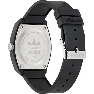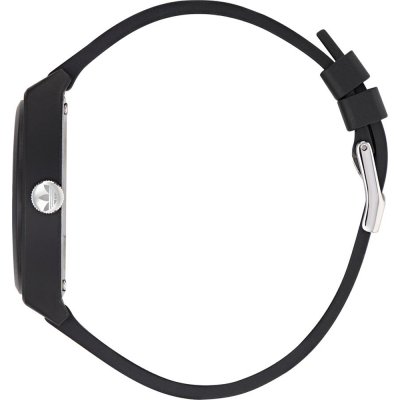 Dit Adidas horloge heeft een kast gemaakt van Kunsthars met een diameter van 38 mm en is voorzien van een Kunsthars band. In de kast bevindt zich een Timex kwaliteitsuurwerk en is afgewerkt met Acrylglas.