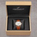 Dit Aerowatch horloge heeft een kast gemaakt van Roestvrijstaal met een diameter van 42 mm en is voorzien van een leren band. In de kast bevindt zich een Sellita kwaliteitsuurwerk en is afgewerkt met Saffierglas.