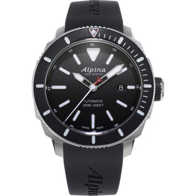 Dit Alpina horlogebandje is gemaakt van siliconen en wordt aan het horloge bevestigd door middel van bandpennen. De band heeft een breedte van 22 mm. De band heeft geen rechte aanzet wat betekent dat deze band alleen geschikt is voor de horloges die hieronder worden vermeld.
