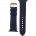 Dit Apple Watch horlogebandje is gemaakt van met textiel overtrokken leer en wordt aan het horloge bevestigd door middel van bandpennen. De band heeft een breedte van 24 mm en wordt gesloten door middel van een gesp. De band heeft een rechte aanzet wat betekent dat deze band geschikt is voor alle Apple Watch horloges met een rechte aanzet.