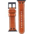Dit Apple Watch horlogebandje is gemaakt van leer en wordt aan het horloge bevestigd door middel van quick release pushpins. De band heeft een breedte van 24 mm en wordt gesloten door middel van een gesp. De band heeft een rechte aanzet wat betekent dat deze band geschikt is voor alle Apple Watch horloges met een rechte aanzet.