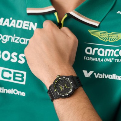 Dit Aston Martin horloge heeft een kast gemaakt van Kunsthars met een diameter van 40 mm en is voorzien van een Rubber band. In de kast bevindt zich een Timex kwaliteitsuurwerk en is afgewerkt met Mineraalglas.