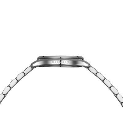 Dit Balmain horloge heeft een kast gemaakt van Roestvrijstaal met een diameter van 27.5 mm en is voorzien van een Roestvrijstaal band. In de kast bevindt zich een ETA kwaliteitsuurwerk en is afgewerkt met Saffierglas.