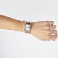 Bicolor zilver-roségoud rechthoekig dameshorloge