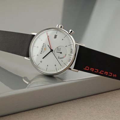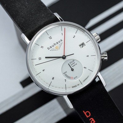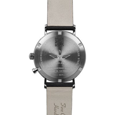 Dit Bauhaus horloge heeft een kast gemaakt van Roestvrijstaal met een diameter van 41 mm en is voorzien van een leren band. In de kast bevindt zich een Seiko kwaliteitsuurwerk en is afgewerkt met K1 Mineraalglas.