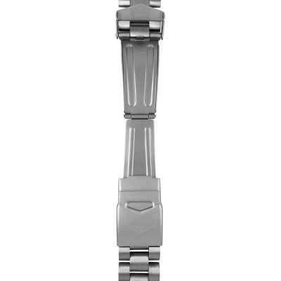 Dit Bauhaus horlogebandje is gemaakt van titanium en wordt aan het horloge bevestigd door middel van bandpennen. De band heeft een breedte van 22 mm en wordt gesloten door middel van een vouwsluiting met veiligheidsklep. De band heeft geen rechte aanzet wat betekent dat deze band alleen geschikt is voor de horloges die hieronder worden vermeld.