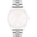 Dit Calvin Klein horlogebandje is gemaakt van roestvrij staal en wordt aan het horloge bevestigd door middel van bandpennen. De band heeft een breedte van 18 mm en wordt gesloten door middel van een vouwsluiting met drukknoppen. De band heeft geen rechte aanzet wat betekent dat deze band alleen geschikt is voor de horloges die hieronder worden vermeld.