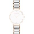 Dit Calvin Klein horlogebandje is gemaakt van roestvrij staal en wordt aan het horloge bevestigd door middel van stalen pennen. De band heeft een breedte van 12 mm en wordt gesloten door middel van een sieraadsluiting. De band heeft geen rechte aanzet wat betekent dat deze band alleen geschikt is voor de horloges die hieronder worden vermeld.