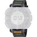 Dit Casio horlogebandje is gemaakt van kunsthars en wordt aan het horloge bevestigd door middel van quick release pushpins. De band heeft een breedte van 23 mm en wordt gesloten door middel van een gesp. De band heeft geen rechte aanzet wat betekent dat deze band alleen geschikt is voor de horloges die hieronder worden vermeld.