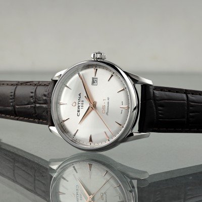 Dit Certina horloge heeft een kast gemaakt van Roestvrijstaal met een diameter van 40 mm en is voorzien van een leren band. In de kast bevindt zich een ETA kwaliteitsuurwerk en is afgewerkt met Saffierglas.