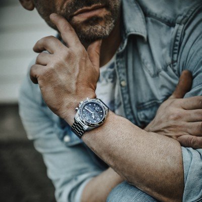 Deze titanium quartz duikchronograaf bevat een COSC-gecertificeerd Precidrive-uurwerk, dat garant staat voor uitzonderlijke nauwkeurigheid. Andere kenmerken zijn een unidirectionele aluminium bezel, 30 ATM waterdichtheid, 1/10 sec in real-time 30 min chronograaf, saffierglas en uitstekende lumen. Net als alle Certina-horloges is het horloge, dankzij het DS-concept van het merk, robuust en duurzaam.