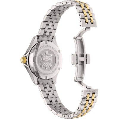 Dit Certina horloge heeft een kast gemaakt van Titanium met een diameter van 33.8 mm en is voorzien van een Titanium band. In de kast bevindt zich een ETA kwaliteitsuurwerk en is afgewerkt met Enkelvoudig ontspiegeld saffierglasglas.