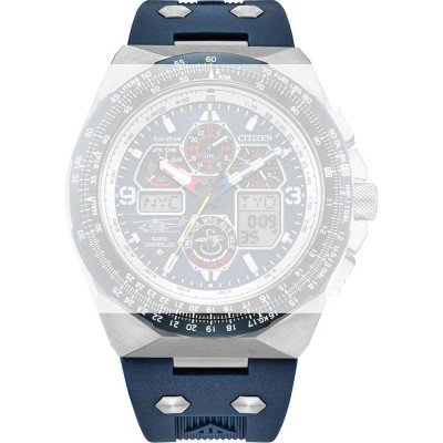 Dit Citizen horlogebandje is gemaakt van siliconen en wordt aan het horloge bevestigd door middel van bandpennen. De band heeft een breedte van 27 mm en wordt gesloten door middel van een gesp. De band heeft geen rechte aanzet wat betekent dat deze band alleen geschikt is voor de horloges die hieronder worden vermeld.