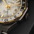 Dit tot 1600 stuks gelimiteerde mechanische GMT horloge maakt deel uit van de zeer gewaardeerde Citizen Series 8. Het heeft een kaliber 9054 uurwerk, een 24-uurs display, GMT wijzer, een datumfunctie en antimagnetische kast. Met een waterdichtheid tot 10 bar, een gangreserve van 50 uur en een nauwkeurigheid van -10/+20 seconden per dag maakt dit Series 8 horloge indruk met zowel functionaliteit als een stijlvol uiterlijk. De donkergrijze roestvrijstalen kast met ontspiegeld saffierglas, 24-uurs lunette en gestructureerde wijzerplaat met kleurverloop biedt niet alleen robuustheid, maar voegt ook stijl toe. Dit is een serieus horloge met een hoge mate van functionaliteit en elegantie dat zowel in een zakelijke als casual omgeving past.
