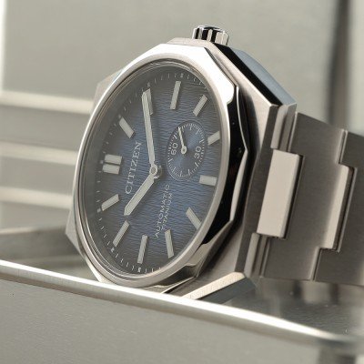 De Japanse term 'Zenshin' betekent vooruitgang, verbetering of vooruitgang. Deze ambitie was de basis voor het eerste titanium horloge ter wereld van Citizen uit 1970. In de daaropvolgende 55 jaar ontwikkelde Citizen verschillende unieke concepten in titanium zoals Super Titanium™ en Duratect. Deze horloges zijn licht, hypoallergeen, robuust en krasbestendig. De decentrale kleine secondewijzer is het onderscheidende designkenmerk van de Zenshin-modellen, net als de 12-kantige lunette en de gestructureerde wijzerplaten met elegant kleurverloop, ook wel dégradé of fumé genoemd. Het automatische uurwerk is het in-house kaliber 8322 met een gangreserve van 60 uur, dat zichtbaar is door de glazen achterzijde van de kast.