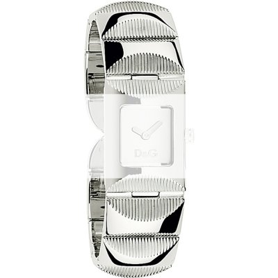 Dit D & G horlogebandje is gemaakt van roestvrij staal en wordt aan het horloge bevestigd door middel van stalen pennen. De band heeft een breedte van 20 mm en wordt gesloten door middel van een sieraadsluiting. De band heeft geen rechte aanzet wat betekent dat deze band alleen geschikt is voor de horloges die hieronder worden vermeld.