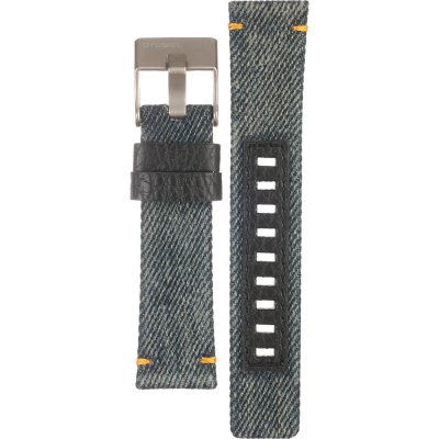 Dit Diesel horlogebandje is gemaakt van met textiel overtrokken leer en wordt aan het horloge bevestigd door middel van bandpennen. De band heeft een breedte van 20 mm en wordt gesloten door middel van een gesp. De band heeft een rechte aanzet wat betekent dat deze band geschikt is voor alle Diesel horloges met een rechte aanzet.