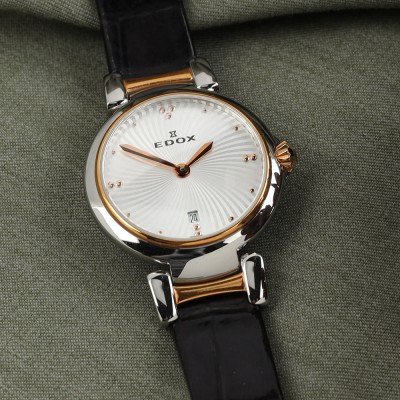 Dit Edox horloge heeft een kast gemaakt van Roestvrijstaal met een diameter van 29 mm en is voorzien van een leren band. In de kast bevindt zich een Ronda kwaliteitsuurwerk en is afgewerkt met Saffierglas.