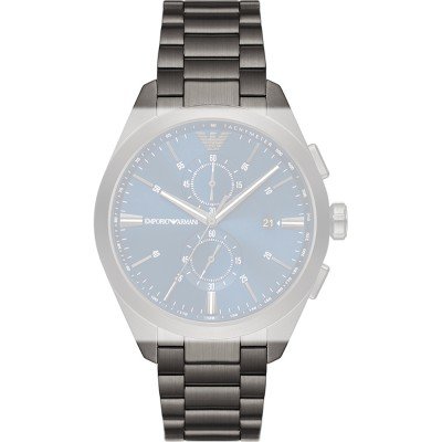 Dit Emporio Armani horlogebandje is gemaakt van roestvrij staal en wordt aan het horloge bevestigd door middel van bandpennen. De band heeft een breedte van 20 mm en wordt gesloten door middel van een vlindersluiting met drukknoppen. De band heeft geen rechte aanzet wat betekent dat deze band alleen geschikt is voor de horloges die hieronder worden vermeld.
