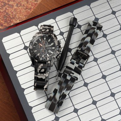 Dit Festina horloge heeft een kast gemaakt van Roestvrijstaal met een diameter van 45 mm en is voorzien van een Roestvrijstaal band. In de kast bevindt zich een Miyota kwaliteitsuurwerk en is afgewerkt met Saffierglas.