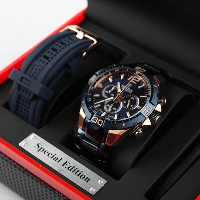- Een zeer elegant horloge met de mogelijkheid om de metalen band om te ruilen voor een rubberen band. De kleurencombinatie past erg goed met een discreet donkerblauw dat contrasteert met de roségouden onderdelen van het horloge - de kast is ook erg elegant en geeft het een meer premium gevoel. Wordt geleverd met een precisieschroevendraaier om het bandje te verwisselen. Een kleine toelichting voor het verwisselen van het bandje zou niet overbodig zijn - Snelle levering zonder vertragingen - Zeer efficiënte dienst na verkoop!