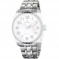 Dit Festina horlogebandje is gemaakt van roestvrij staal en wordt aan het horloge bevestigd door middel van bandpennen. De band heeft een breedte van 25 mm en wordt gesloten door middel van een vouwsluiting met drukknoppen. De band heeft geen rechte aanzet wat betekent dat deze band alleen geschikt is voor de horloges die hieronder worden vermeld.