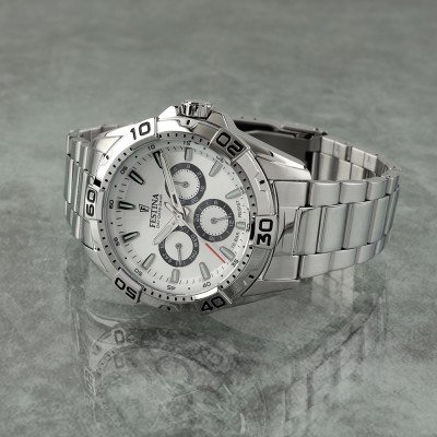 Dit Festina horloge heeft een kast gemaakt van Roestvrijstaal met een diameter van 44 mm en is voorzien van een metalen band. In de kast bevindt zich een Miyota kwaliteitsuurwerk en is afgewerkt met Mineraalglas.