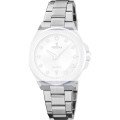 Dit Festina horlogebandje is gemaakt van roestvrij staal en wordt aan het horloge bevestigd door middel van pen en buis. De band heeft een breedte van 17 mm en wordt gesloten door middel van een vouwsluiting met drukknoppen. De band heeft geen rechte aanzet wat betekent dat deze band alleen geschikt is voor de horloges die hieronder worden vermeld.