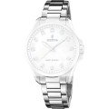 Dit Festina horlogebandje is gemaakt van roestvrij staal en wordt aan het horloge bevestigd door middel van bandpennen. De band heeft een breedte van 16 mm en wordt gesloten door middel van een vouwsluiting met drukknoppen. De band heeft geen rechte aanzet wat betekent dat deze band alleen geschikt is voor de horloges die hieronder worden vermeld.