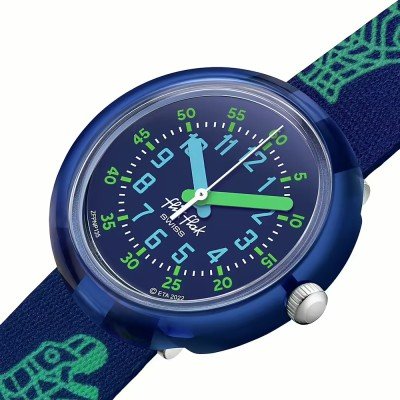 Dit Flik Flak horloge heeft een kast gemaakt van Kunststof met een diameter van 30 mm en is voorzien van een textiel band. In de kast bevindt zich een ETA kwaliteitsuurwerk en is afgewerkt met Acrylglas.