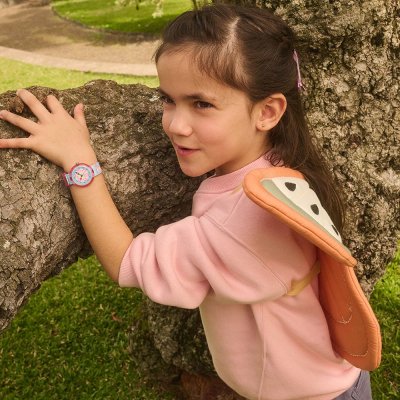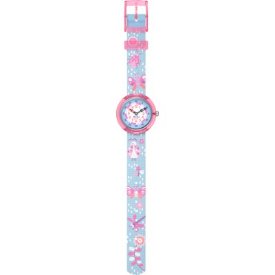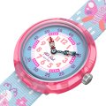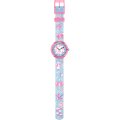 Dit Flik Flak horloge heeft een kast gemaakt van Bio-plastic met een diameter van 30 mm en is voorzien van een textiel band. In de kast bevindt zich een ETA kwaliteitsuurwerk en is afgewerkt met Acrylglas.