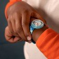 Dit Flik Flak horloge heeft een kast gemaakt van Bio-plastic met een diameter van 29.5 mm en is voorzien van een textiel band. In de kast bevindt zich een ETA kwaliteitsuurwerk en is afgewerkt met Acrylglas.