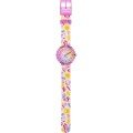 Dit Flik Flak horloge heeft een kast gemaakt van Bio-plastic met een diameter van 30 mm en is voorzien van een textiel band. In de kast bevindt zich een ETA kwaliteitsuurwerk en is afgewerkt met Acrylglas.