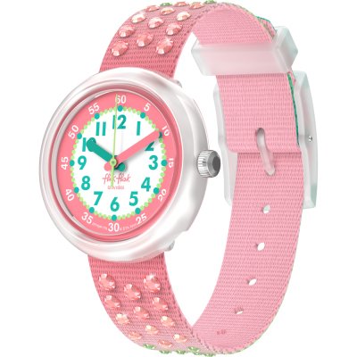 Dit Flik Flak horloge heeft een kast gemaakt van Bio-plastic met een diameter van 30 mm en is voorzien van een textiel band. In de kast bevindt zich een ETA kwaliteitsuurwerk en is afgewerkt met Acrylglas.