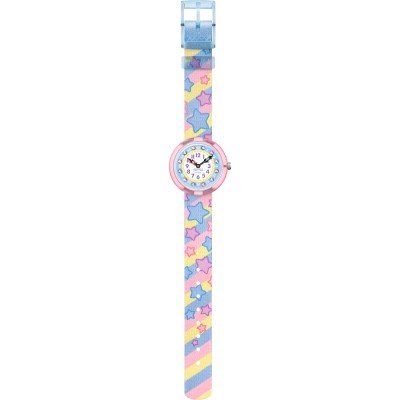 Dit Flik Flak horloge heeft een kast gemaakt van Kunststof met een diameter van 29.5 mm en is voorzien van een textiel band. In de kast bevindt zich een ETA kwaliteitsuurwerk en is afgewerkt met Acrylglas.