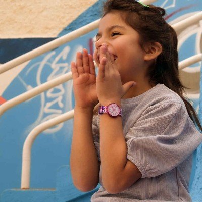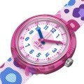 Dit Flik Flak horloge heeft een kast gemaakt van Bio-plastic met een diameter van 30 mm en is voorzien van een textiel band. In de kast bevindt zich een ETA kwaliteitsuurwerk en is afgewerkt met Acrylglas.