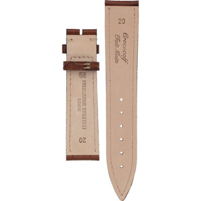 Dit Frederique Constant horlogebandje is gemaakt van leer en wordt aan het horloge bevestigd door middel van bandpennen. De band heeft een breedte van 20 mm. De band heeft een rechte aanzet wat betekent dat deze band geschikt is voor alle Frederique Constant horloges met een rechte aanzet.