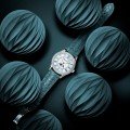 Het verhaal achter het Classics Elegance Luna horloge is heel vertederend, want de onschuldige en romantische maanfase is ontworpen door de jonge dochter van het hoofd R&D van de fabrikant. Twee halve maantjes in een liefdevolle omhelzing, wat totaal anders is dan traditionele maanfase-ontwerpen. Het is ook een heel vrouwelijk horloge met een luxe uitstraling. De prachtige parelmoeren wijzerplaat is voorzien van sierlijke Romeinse cijfers, die voor het eerst in dezelfde kleur zijn uitgevoerd als de leren band. Deze stijl is exclusief voor de Elegance Luna lijn en een zeldzaamheid in de horlogerie. Het door en door klassieke en luxe karakter van dit horloge wordt verder versterkt door een ring van 56 diamanten (0,1 karaat) in de wijzerplaat en 40 diamanten (0,47 karaat) op de kast. Om de set compleet te maken, wordt het horloge geleverd met een extra band waarmee u het horloge in een paar klikken een andere look kunt geven.