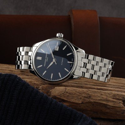 De Frederique Constant Classic Index Automatic is een modern-klassiek dress watch. Een rechttoe rechtaan 40 mm roestvrijstalen kast met een verfijnde matte wijzerplaat, zorgvuldig aangebrachte wijzers en zwaard-wijzers kruisen alle juiste vakjes aan. Op het eerste gezicht een eenvoudig horloge, maar de kwaliteit komt tot uiting in de details en in het automatische Zwitserse FC-303 uurwerk (gebaseerd op de Sellita SW200-1) met 26 juwelen en 38 uur gangreserve. Het is een ingetogen maar chique horloge voor dagelijks gebruik.