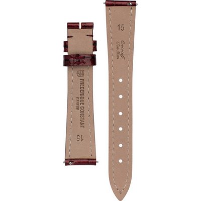 Dit Frederique Constant horlogebandje is gemaakt van leer en wordt aan het horloge bevestigd door middel van quick release pushpins. De band heeft een breedte van 15 mm. De band heeft een rechte aanzet wat betekent dat deze band geschikt is voor alle Frederique Constant horloges met een rechte aanzet.