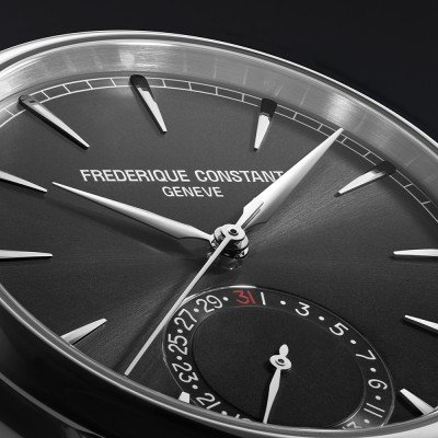 De nieuwe Manufacture Classic Date blijft trouw aan de traditionele horlogerie met een moderne benadering. Dat doet het door een andere stilistische en technische invalshoek te kiezen dan zijn voorgangers. Het nieuwe model draait om verfijning, te beginnen met een afgeslankte kast van 40 mm in plaats van de 42 van eerdere modellen in deze collectie. Bij het maken van een nieuw manufactuur uurwerk bij Frederique Constant werken ontwerper en ingenieur hand in hand. De ontwerper verantwoordelijk voor de vormgeving van de buitenkant van het horloge, de ingenieur voor het creëren van het uurwerk. De Classic Date Manufacture bevat het nieuw ontwikkelde FC-706 kaliber met een gangreserve van 72 uur en een indrukwekkende garantie van vijf jaar. De wijzerplaat van het horloge is vrij van rommel; slanke uurmarkeringen en een 'railtrack' minutencirkel omsluiten de sunray wijzerplaat die een kleine datumwijzer op zes uur bevat. Door het kleinere formaat lijkt de wijzerplaat relatief groter en opener dan voorheen, terwijl de sunray-afwerking hem een zachte, elegante glans geeft.