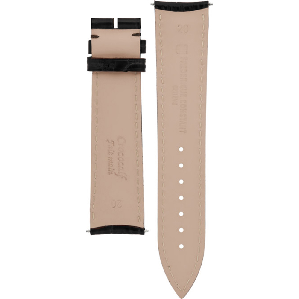 Dit Frederique Constant horlogebandje is gemaakt van leer en wordt aan het horloge bevestigd door middel van bandpennen. De band heeft een breedte van 20 mm. De band heeft een rechte aanzet wat betekent dat deze band geschikt is voor alle Frederique Constant horloges met een rechte aanzet.