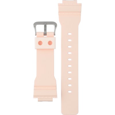 Dit G-Shock horlogebandje is gemaakt van kunststof en wordt aan het horloge bevestigd door middel van bandpennen. De band heeft een breedte van 22 mm en wordt gesloten door middel van een gesp. De band heeft geen rechte aanzet wat betekent dat deze band alleen geschikt is voor de horloges die hieronder worden vermeld.