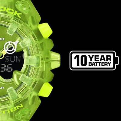 Soms denkt u misschien dat er niets meer te verbeteren valt aan horloges in de 21e eeuw, maar dan heeft u buiten G-Shock gerekend. Na veertig jaar van constante innovatie is het merk er opnieuw in geslaagd om de horlogewereld te verrassen met een volledig uniek en origineel ontwerp. Met een compleet nieuwe benadering van de constructie heeft de GA-V01 niet alleen een spectaculair uiterlijk, maar is het ook super schokbestendig en verbergt opmerkelijke technische innovaties: De kaststructuur, die het uurwerk beschermt, maakt gebruik van een geïntegreerde bezel- en armbandconstructie die het glas gedeeltelijk overlapt en zo ook als bumper fungeert om schokken op te vangen. Casio heeft ook een nieuwe magnetische wijzerconstructie ontwikkeld, waarbij de wijzers, die normaal gesproken kwetsbaar zijn voor schokken, niet aan de as zijn bevestigd, maar op hun plaats worden gehouden door magnetische kracht. Hierdoor kunnen ze schokken effectief absorberen en afvoeren. Deze nieuwe technologie maakt het ook mogelijk om grotere, uniek gevormde wijzers te maken omdat de as hun gewicht niet hoeft te dragen. Na een schok of trilling kunnen de wijzers tijdelijk uit positie verschuiven, maar binnen een paar minuten keren ze op bijna magische wijze terug naar hun oorspronkelijke positie. De analoog-digitale wijzerplaat heeft een gelaagde constructie met een metalen wijzerplaat met rastergedeeltes, die een decoratieve blik in het interieur werpen, en een LCD-display. Dit horloge is niet voor degenen die risico's mijden. Het is opvallend, groot en zal mensen zeker aan het praten krijgen! En, u bent verzekerd van een sterk en krachtig uurwerk dat blijft werken, ongeacht schokken en stoten!