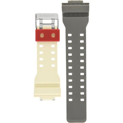Dit G-Shock horlogebandje is gemaakt van kunststof en wordt aan het horloge bevestigd door middel van bandpennen. De band heeft een breedte van 29 mm en wordt gesloten door middel van een gesp. De band heeft geen rechte aanzet wat betekent dat deze band alleen geschikt is voor de horloges die hieronder worden vermeld.