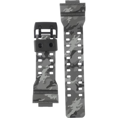 Dit G-Shock horlogebandje is gemaakt van kunststof en wordt aan het horloge bevestigd door middel van bandpennen. De band heeft een breedte van 29 mm en wordt gesloten door middel van een gesp. De band heeft geen rechte aanzet wat betekent dat deze band alleen geschikt is voor de horloges die hieronder worden vermeld.