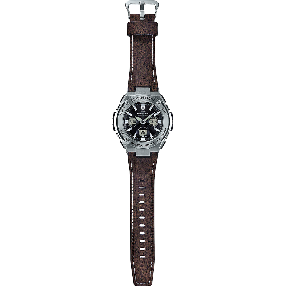 Dit G-Shock horloge heeft een roestvrijstalen kast met een diameter van 52mm en is voorzien van een leren band. In de kast bevindt zich een radio gestuurde kwaliteitsuurwerk en is afgewerkt met mineraalglas.