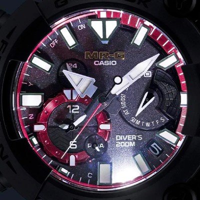 Dit hoogwaardige MR-G Frogman duikershorloge combineert de duikfuncties van het iconische analoge Frogman model met een nieuwe high-end titanium constructie en de luxe styling van de hoogwaardige MR-G lijn. De nieuwe MRG-BF1000 heeft geen carbon monocoque kast zoals de GWF-B1000 modellen, maar een titanium kast die is behandeld met een diepe laag harding en een DLC coating en een nieuw saffierglas met een rode dampdepositie schroefsluiting aan de achterkant van de kast. De bezel enband zijn ook gemaakt van titanium. Deze Frogman is iets kleiner en dunner dan het vorige model, maar ook iets zwaarder (170 versus 132 gram). Verder maakt deze Frogman gebruik van knoppen die zijn ontworpen en getest om volledig onder water te functioneren. Het horloge is uitgerust met Tough Solar om de batterij op te laden, Multi-Band 6 voor automatische radiogestuurde tijdsaanpassing en het beschikt over Bluetooth-koppeling met je smartphone via de nieuwste 'Casio Watches' smartphone-app. Het Frogman duikhorloge meet duiktijden tot twee uur en registreert tot 30 datalog records. Andere functies zijn een getijdengrafiek, wereldtijd met twee wijzerplaten (27 tijdzones), dagelijks alarm, datumweergave en dagindicator (volledige automatische kalender), automatisch omschakelen naar zomertijd, en zelfs een telefoonzoekfunctie.