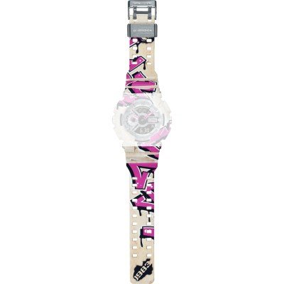 Dit G-Shock horlogebandje is gemaakt van kunsthars en wordt aan het horloge bevestigd door middel van bandpennen. De band heeft een breedte van 29 mm en wordt gesloten door middel van een gesp. De band heeft geen rechte aanzet wat betekent dat deze band alleen geschikt is voor de horloges die hieronder worden vermeld.