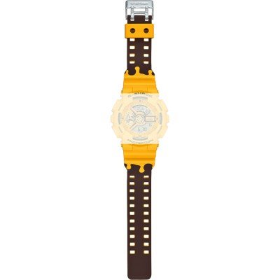 Dit G-Shock horlogebandje is gemaakt van kunsthars en wordt aan het horloge bevestigd door middel van bandpennen. De band heeft een breedte van 29 mm en wordt gesloten door middel van een gesp. De band heeft geen rechte aanzet wat betekent dat deze band alleen geschikt is voor de horloges die hieronder worden vermeld.